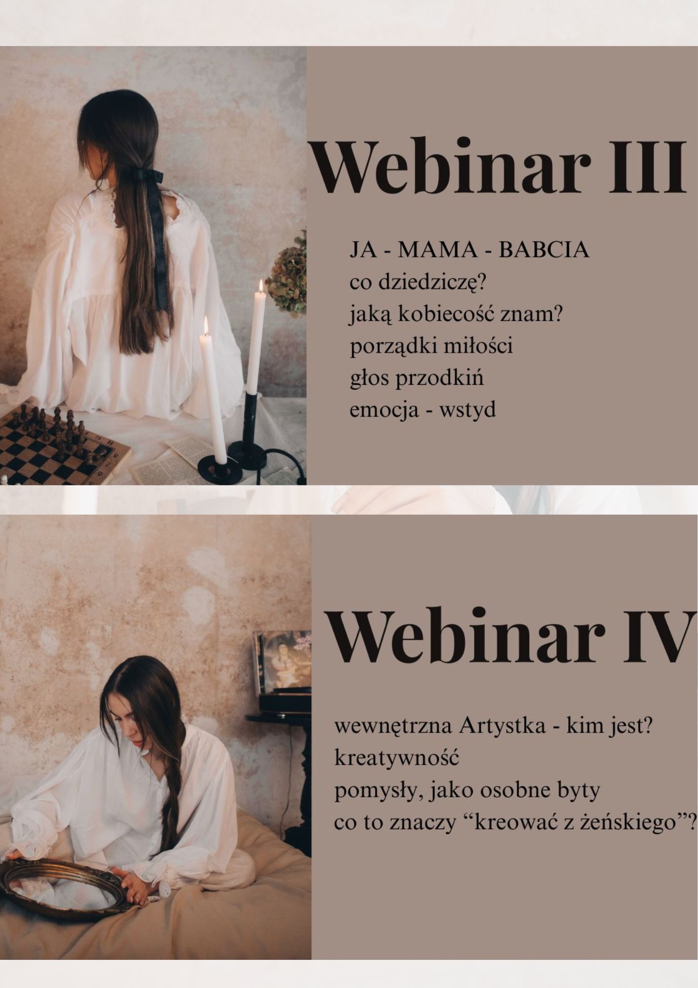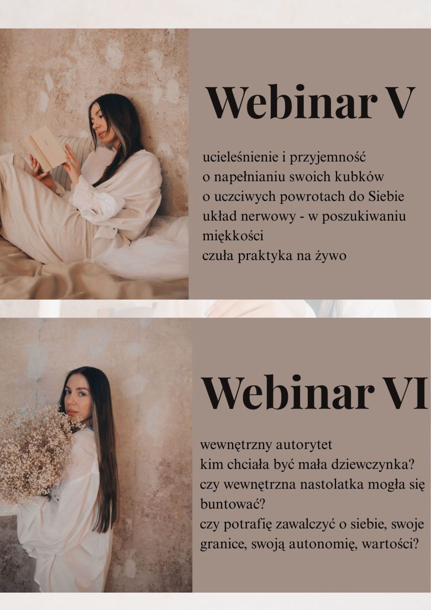Przez 6 tygodni spotykałyśmy się w bliskich naszej codzienności tematach, które dotykały kobiecości w różnorodny sposób odkrywając jej wielowymiarowość. Dziś i Ty możesz uzyskać dostęp do odbytych webinarów.